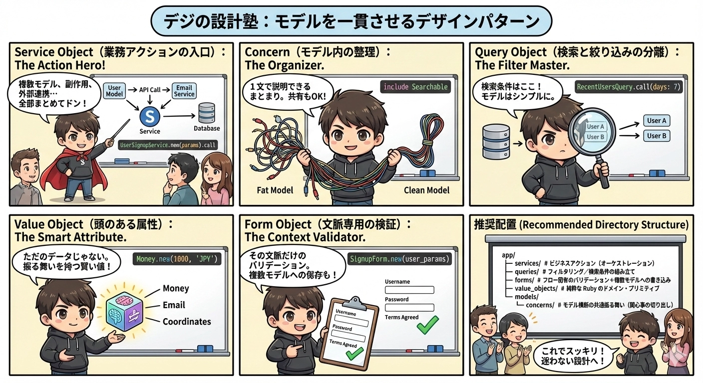 app/models/concerns/ # モデル横断の共通振る舞い(関心事の切り出し)ベンチ手順